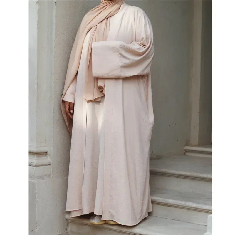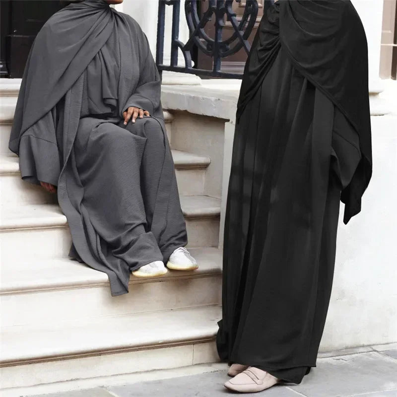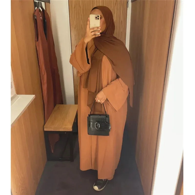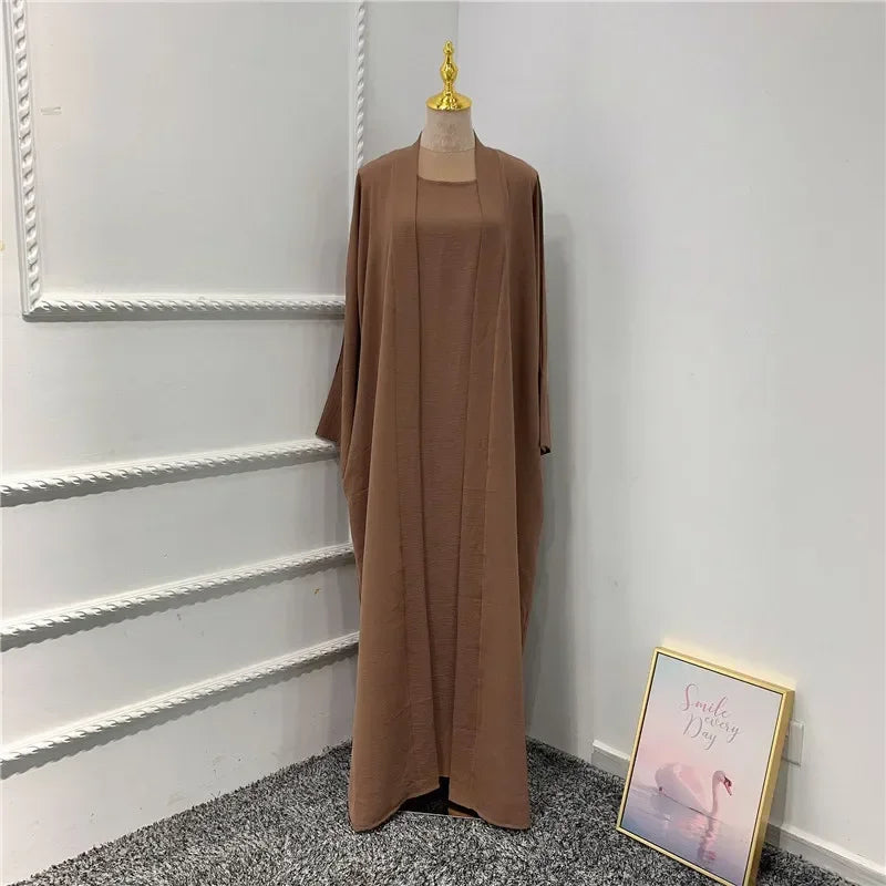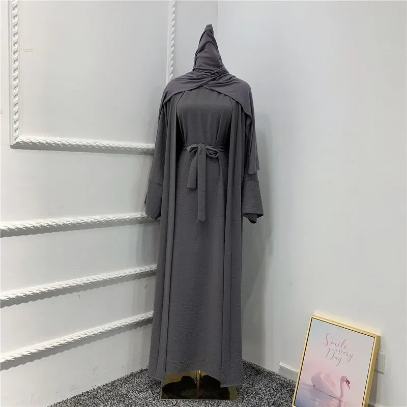 Shop this stylish Dubai Kimono Abaya set. Includes abaya, inner, dress & hijab. perfect for Ramadan, Eid and modest everyday wear