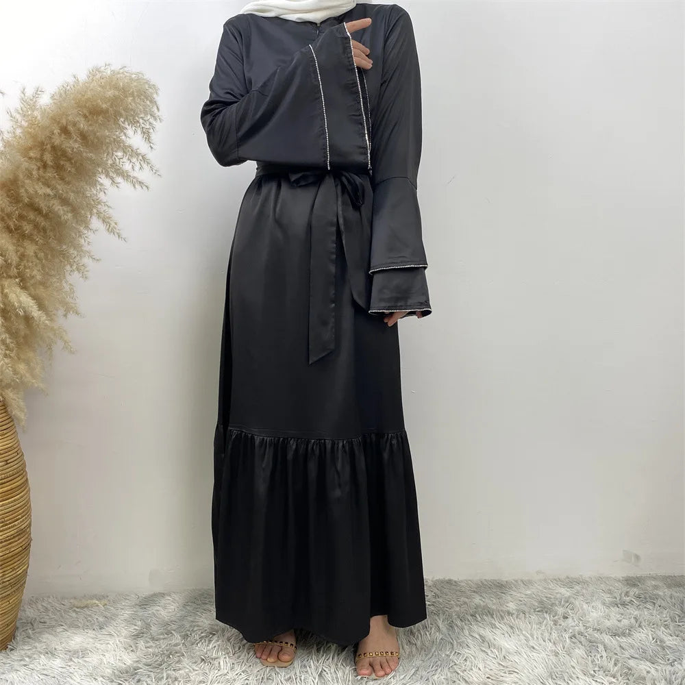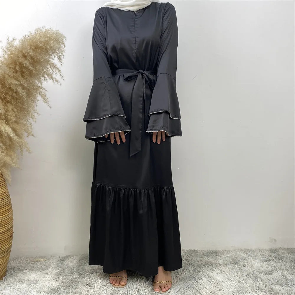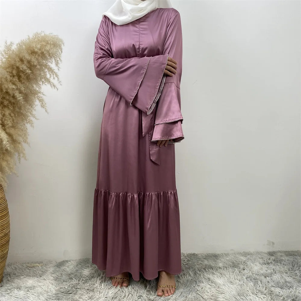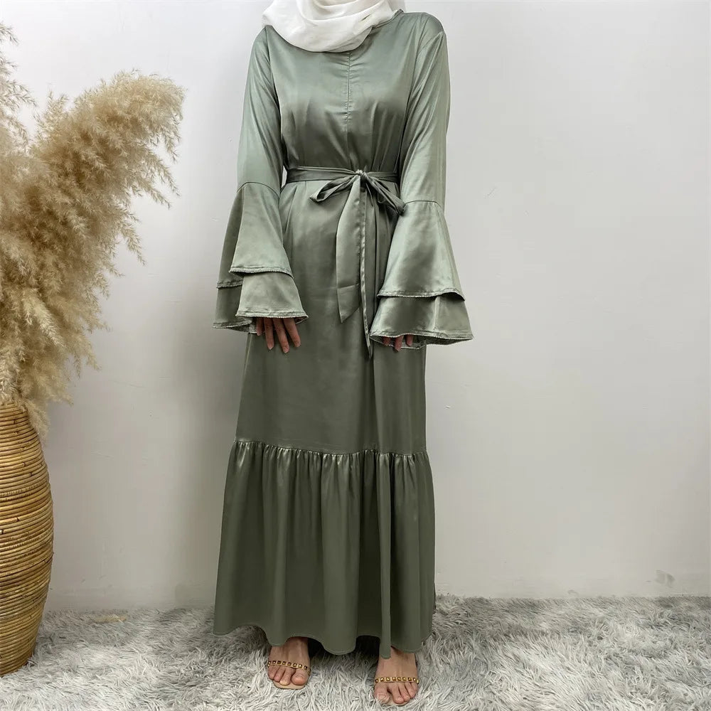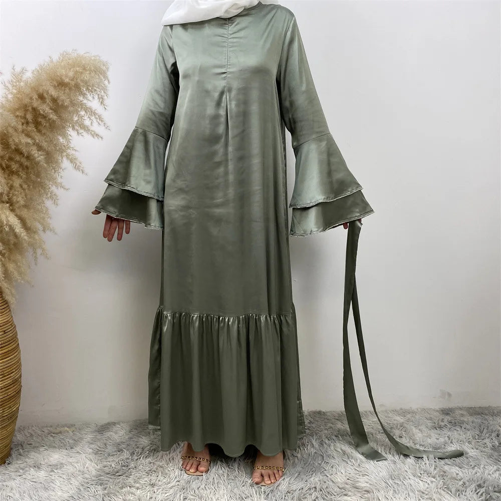 Crafted from smooth satin, this Flare Sleeve Party Dress combines elegance with modern design. The flowing flare sleeves add a refined silhouette, perfect for special occasions. Its lustrous fabric enhances your presence, offering both comfort and style throughout your event. Ideal for those seeking a sophisticated yet effortlessly chic look.
