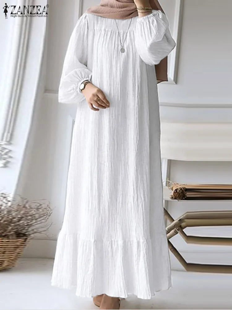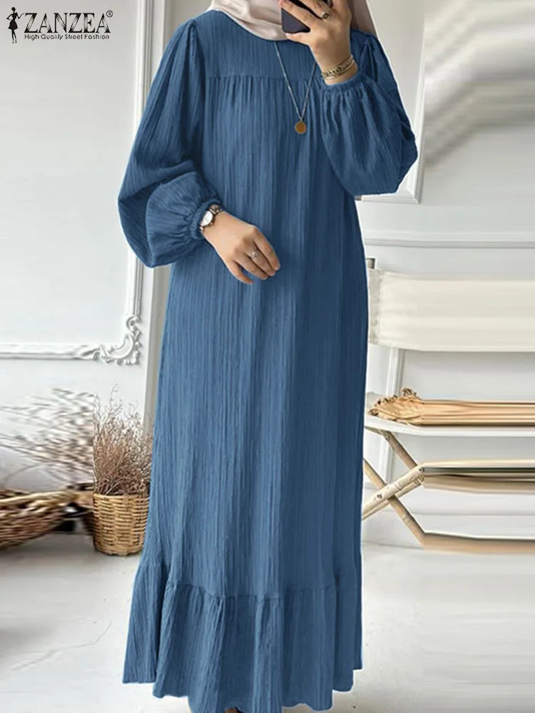 | Package included:1 Dress(Includes belt) Material:100% Polyester Colors:Brown,Blue,White Sleeve Length:Full Sleeve Neckline:O-Neck Pattern:Solid Color Length:Ankle Length Buttons on the back Thickness:Thin Features:Puff Sleeve Style:Leisure,Bohemian,Retro,Europe,Muslim Dress Abaya Kaftan Season:Spring,Summer,Autumn,Winter Occasion:Family,Party,Beach,Wedding,Holiday,Employment Label: Yes Attentions: 1.The Real Object May Exist Slightly Colors Differences Compared To Images As Different Computers Display.Caution If Minding,Thanks. 2.There Might Be A Manual Measuring 1-3 cm Error.Sorry For Any Inconvenience. 3.Please Prevail On Real Item, Model Images For Reference Only. 4.Attention!!!Please check the size chart carefully before placing the order.